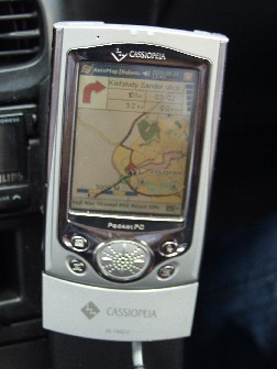 A 2.0 verzió kijövetele után már mindenképpen meg kellett szerezni ezt a szoftvert. A bemutatón ( hol máshol? ) derül ki, hogy nem csak ajánlott, hanem majdnem kötelező az IPAQ a regisztrációs kulcs miatt. Van ugyan alternatíva, -a CF kártya- de nem véletlenül van Casio-m ezért SD kártyát használok, az viszont nem jó az azonosításhoz. Végezetül minden megoldódik ( a Navisys igen segítőkész ) és végre az autóban menet közben követhetem hogy hol járok Veszprémben......